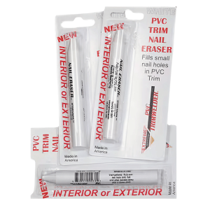 Nail Eraser is specifically formulated just for PVC Trim. PVC Nail Erasers let you fill in nail holes up to 1/8". Use only on PVC Trim that will not be painted.